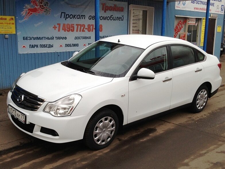 Московская прокатная компания «АрендаАвто-тнд» предлагает взять в аренду Nissan Almera IV MT белого цвета с механической коробкой передач по низкой цене.